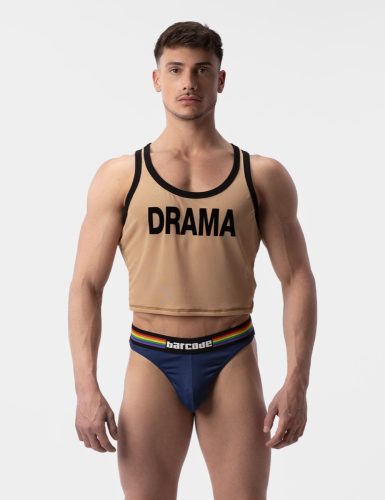 Heb je het over dat drama? Met dit transparante crop topje moet je het zeker meenemen. Gemaakt van rekbaar fijn gaas met een dunne snit en een enorme DRAMA. Siliconen merklogo op de achterkant van de halslijn.