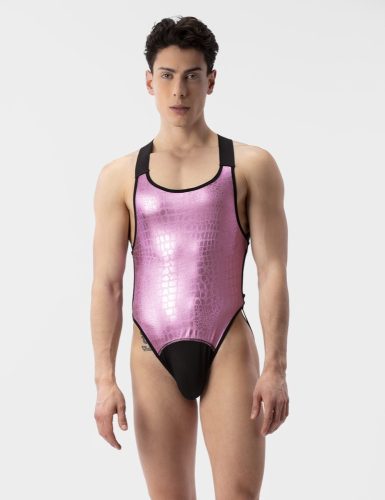 Bodysuit gemaakt van zilver materiaal met een alligatortextuur. Een feestoutfit met een sexy, flatterende pasvorm en bewuste details zoals neon contrast.