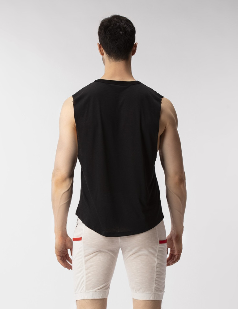 Gym cut en lokale print op de borst Barcode Berlin bear logo.