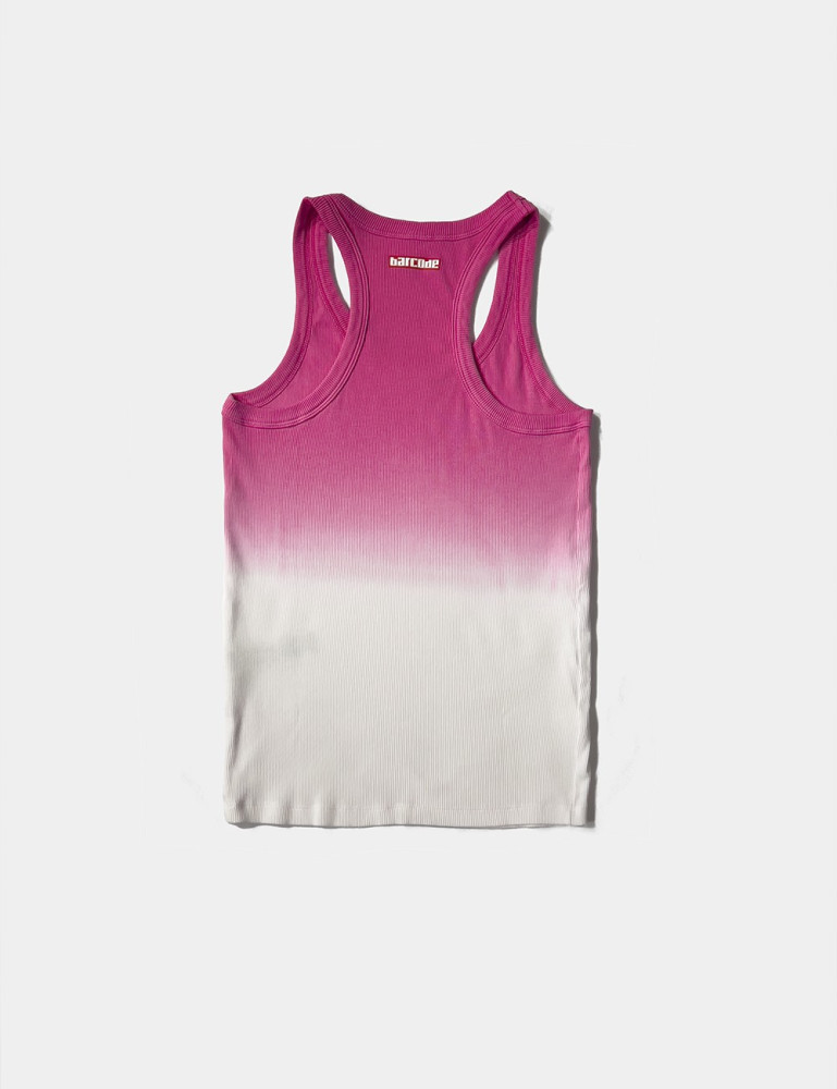 Deze tanktop met een grijpende halslijn heeft een nauwsluitende stijl die het lichaam van de drager benadrukt. De stof schakelt naadloos over van de ene kleur naar de andere, wat een degraderend effect creëert dat een dynamisch visueel effect toevoegt. Het bovenwerk is gemaakt van comfortabel, elastisch geribd materiaal, ideaal voor dagelijks gebruik of training.