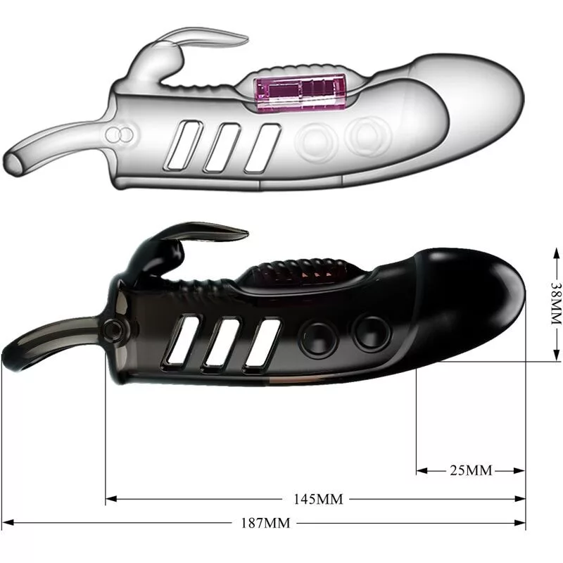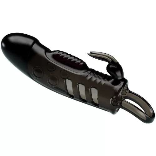 Játssz komoly, szexi szórakozást ezzel a rezgő nyúl pénisz ujjával. Ez a merevedést erősítő és örömet ígérő péniszhüvely puha TPR-ből készült, és egy golyóhurokkal rögzítve van a helyén. A csúcsán lévő vibrátor végignyúlik a pénisz hosszán, és érintéskor aktiválódik. A szár fejének stimulálásával belső stimulációt is biztosítasz neki. Vidd a klimatikus boldogságba azzal, hogy bekapcsolod a nyulat, hogy rezgéseket küldjön közvetlenül a csiklójába. A rugalmas ujj körbefonódik a péniszedre, így erősebb, hosszabb ideig tartó merevedést kapsz, így több időd van élvezni a rezgéseket!