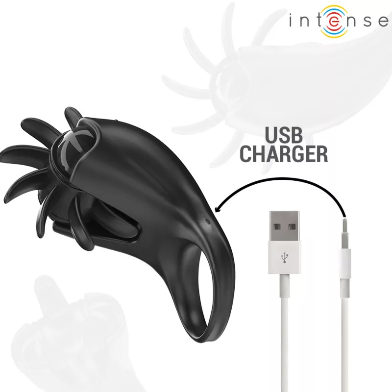 INTENSE - MABEL VIBRÁLÓ GYŰRŰ 10 REZGÉS KLITORIS STIMULÁTORRAL FEKETE