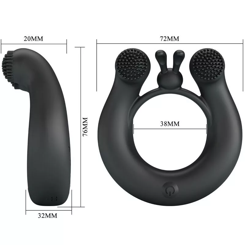 PRETTY LOVE - DAHLIA VIBRÁLÓ GYŰRŰ + CSIKLÓS STIMULÁTOR 12 REZGÉS FEKETE