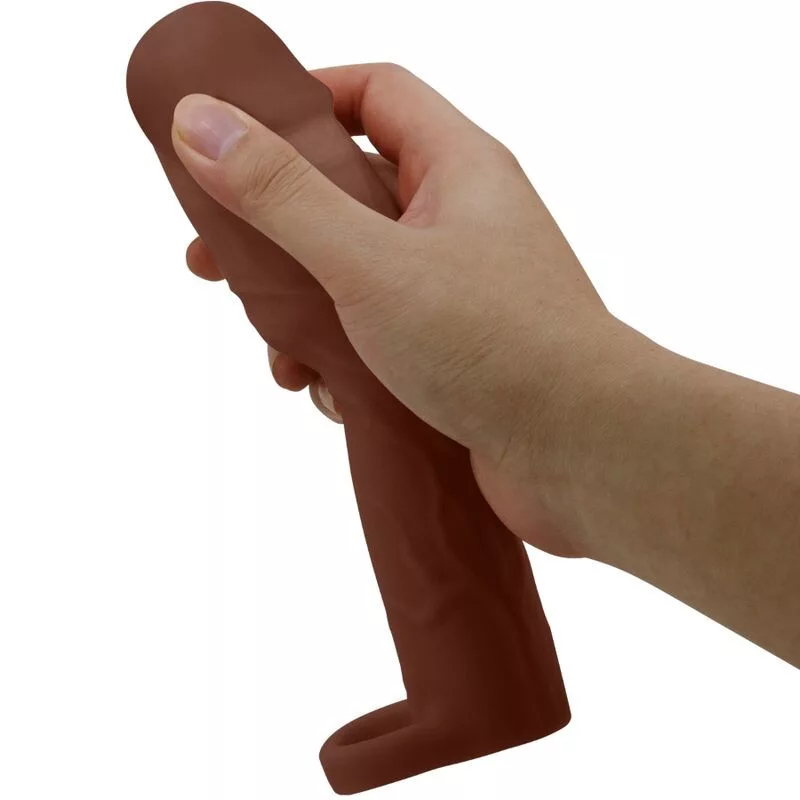 Növeld a pénisz méretét az élvezetes péniszhosszabbítóval. Ultra élethű anyagból készült, ez az ujj 3 hüvelyk hosszat és 35%-os vastagságot ad. A külső felület élethű erekkel van bevonva, és göyrög fejjel rendelkezik, hogy a szerelmed természetes érzéseket éljen át. Egy sima belső csatorna öleli az erekciódat a maximális érintkezés és stimuláció érdekében.