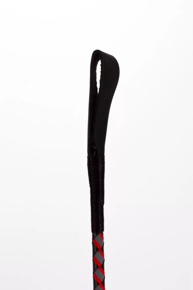 Leren stok met neonstrip en nubuckleren bovenkant rood