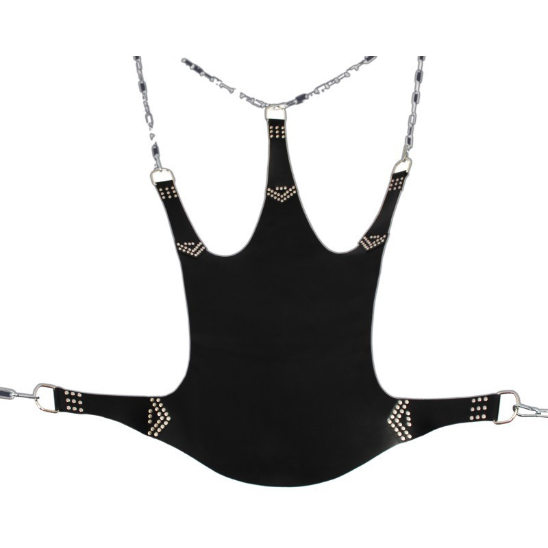 Fedezd fel a vágyak határtalan világát! Ez a prémium bőr sling tökéletes kiegészítője intim játékaitoknak – izgalmas élmények várnak! 5 acél fémkarika, tartós kivitel, 113 x 122 cm méretben. Éld át a szenvedélyt úgy, ahogy még sosem!