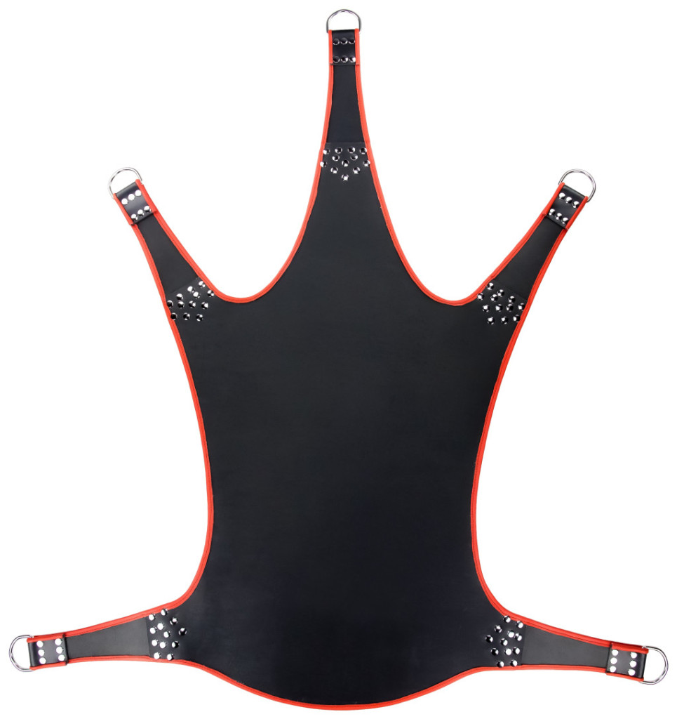 Fedezd fel a szenvedély határait a Mr Sling prémium bőrszíjjával! Elegáns fekete és piros díszítés találkozik a kézműves minőséggel, 5 rögzítési ponttal a maximális sokoldalúságért. 113 x 122 cm-es méret és 3 mm vastagság garantálja a tartósságot és a kényelmet. Élvezd az egyedi dizájnt és a természetes bőrt, ami lebilincselő érzéseket kelt! Ideális választás a stílusos és érzéki pillanatokra!