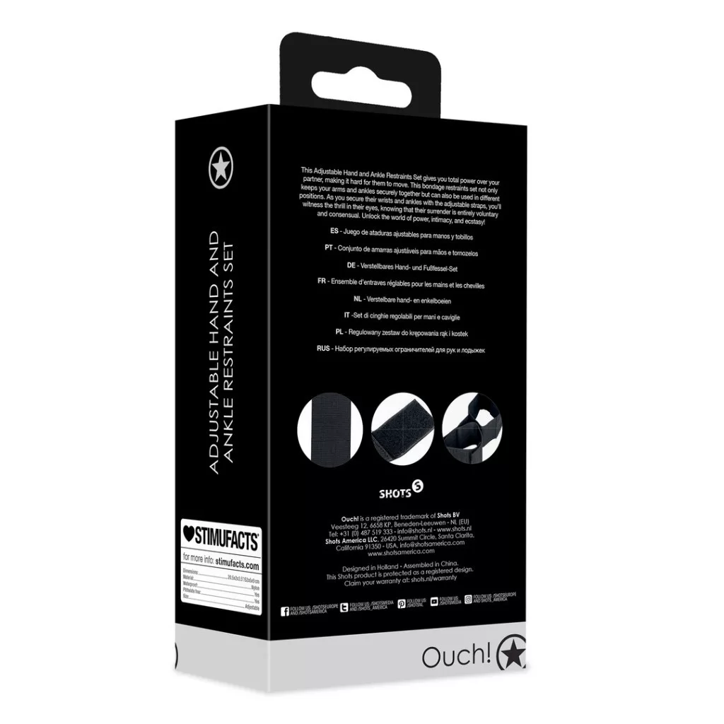 Fedezd fel a vágyak határait e páratlan csukló- és bokakötöző készlettel! Engedd szabadjára a fantáziádat, és tapasztald meg a megújult intimitást, ahol a kontroll átadásával együtt nő a feszültség és a szenvedély. Prémium nylon Velcro zárak biztosítják a tökéletes illeszkedést, míg az állítható távolság szemtelen izgalmakat kínál! Éld át a kötelékek örömét – minden cseppje a közös élvezetért!