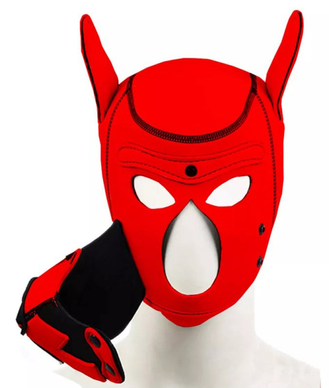 Puppy Fox – piros-fekete neoprén maszk érzéki játékokhoz