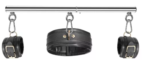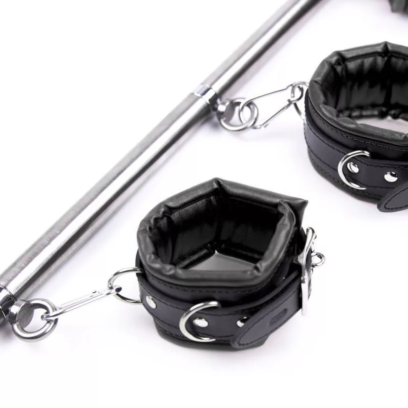Fedezd fel a vágy és kísérletezés határvonalát az exkluzív SM készletünkkel! A 45 cm-es fém rúd, a 6 cm széles kiegészítő és a teljesen állítható csuklópántok (17-27 cm) varázslatos élményeket ígérnek, míg az állítható nyaklánc (37-46 cm) tökéletesen illik hozzád. Emeld új szintre az intimitást, és tapasztald meg a szenvedélyt minden érintésben!