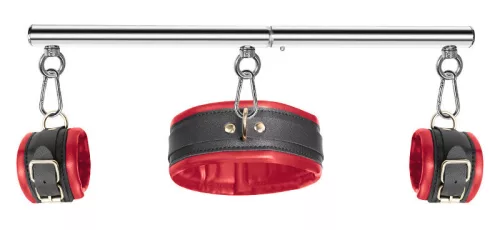 Fedezd fel az izgalom határait az exkluzív SM készlettel! A 45 cm-es fém rúd és az állítható csuklópántok, melyek 17-27 cm között variálhatóak, garantáltan elragadó élményekkel ajándékoznak meg. A 37-46 cm-es nyakörv pedig új dimenziókat nyit a bizalom és szenvedély világában. Éld át a határtalan örömöt, és add át magad a felfedezés izgalmának!