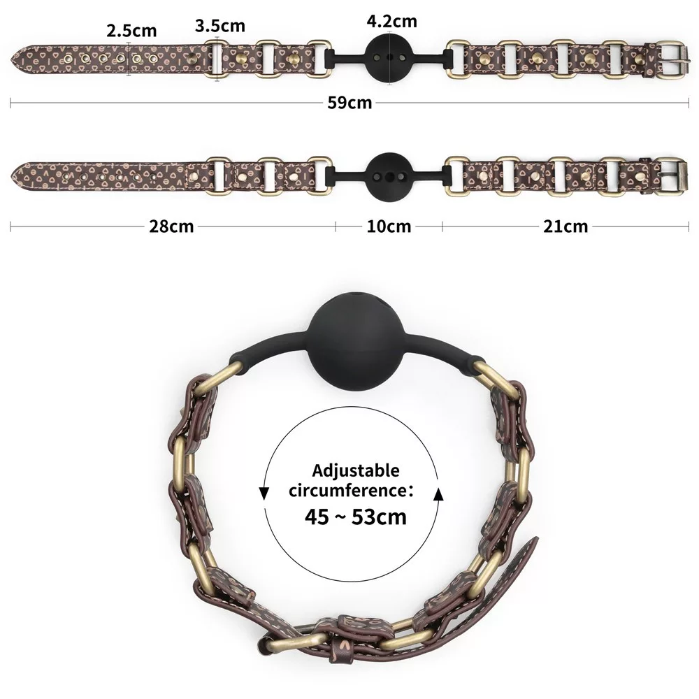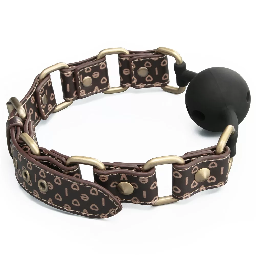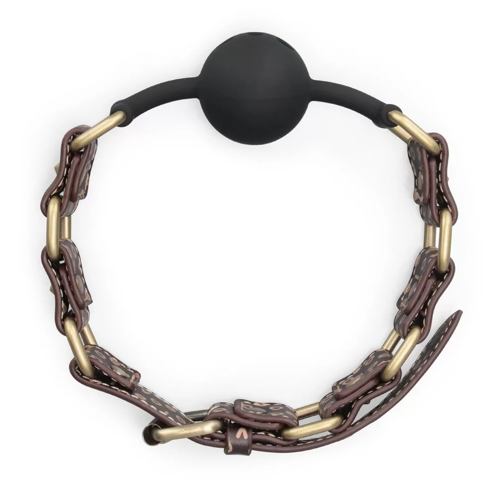 A Rebellion Reign Ball Gag Gag Premium Kwaliteit materiaal waarop zes antieke bronzen spikes zijn afgewisseld met een rijke bruine kleur kunstleer, dat een extra laag unieke flair geeft en de merken aangeeft rebelse geest. Het product kan worden aangepast tussen 45 en 53 cm in diameter.