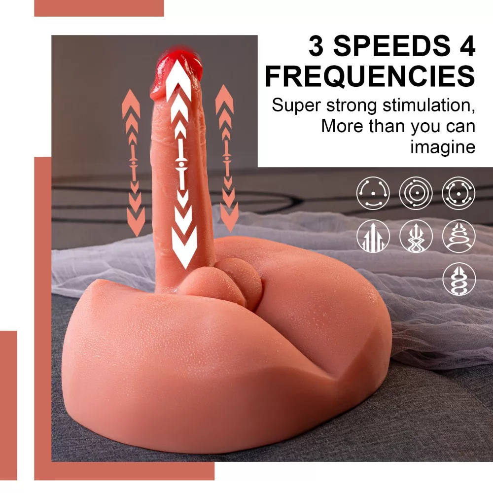 Kiváló minőségű, puha, bőrszerű anyagból készített, pénisszel ellátott erotikus játék, valósághű testméretekkel, a péniszben 3 sebességi, 4 toló és rezgési funkcióval. A pénisz hossza 20 cm, behelyezhető hossza 16 cm, átmérője 4,5 cm. Használatával az aktus közbeni önkontroll nagymértékben fejleszthető, így annak ideje jelentősen növelhető. A termék súlya 3,2 kg.