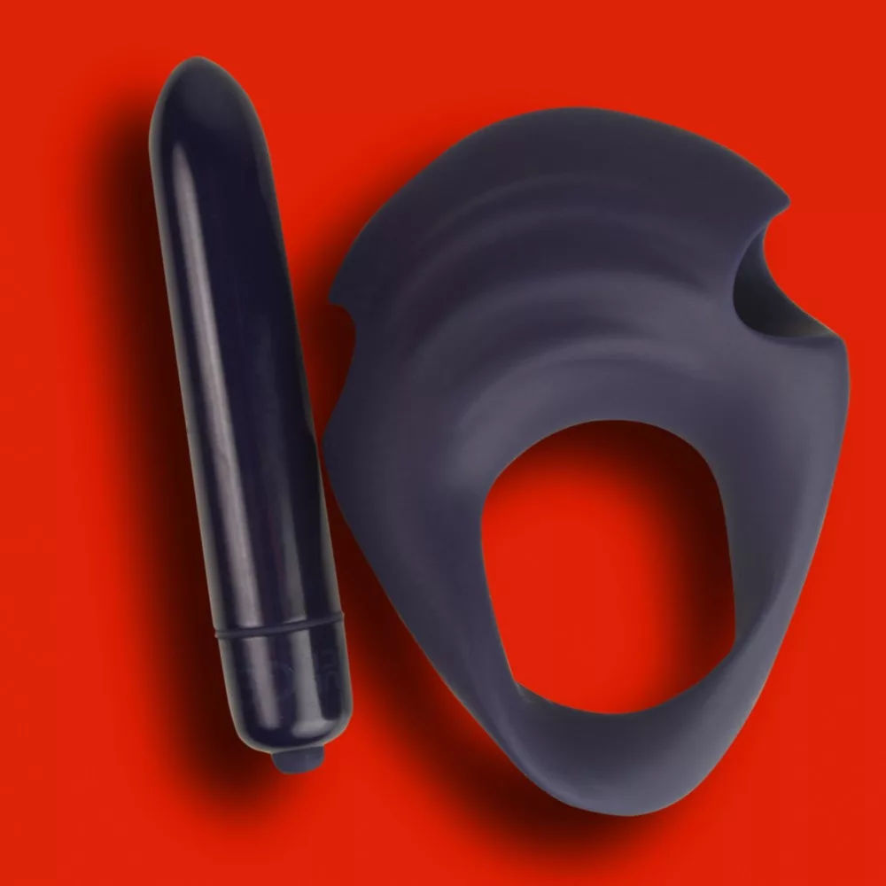 Prémium minőségű anyagból készített, ergonómiailag kialakított, behelyezhető, 10 rezgési funkcióval rendelkező mini vibrátorral is használható péniszgyűrű.
