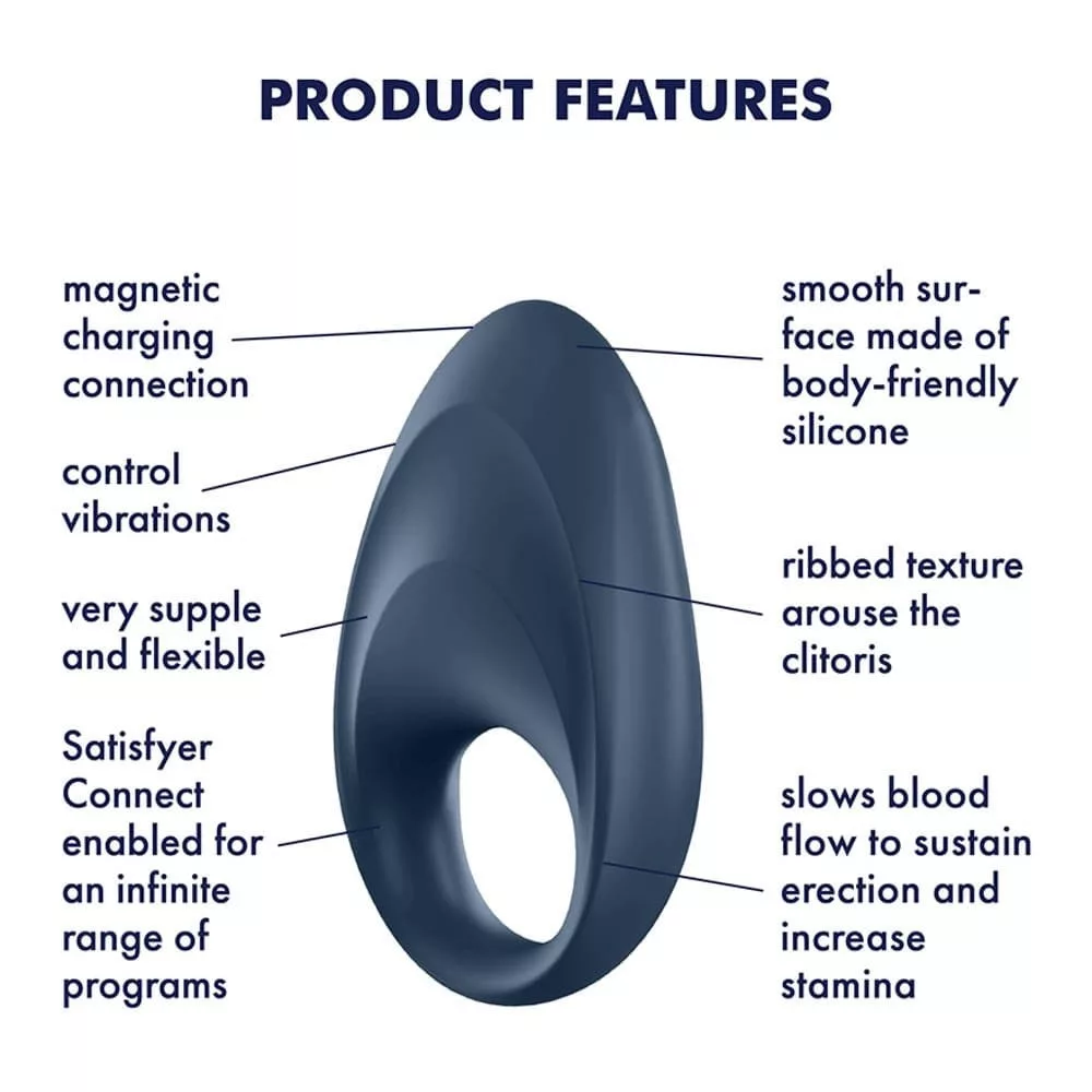 The Satisfyer Mighty One is een penisring die je helpt de erectie te krijgen die je nodig hebt tijdens een langdurige liefdesdaad. De stijlvol ontworpen penisring met zijn fluweelzachte siliconen oppervlak omhult niet alleen je meest kostbare lichaamsdeel, maar ook de clitoris van je partner. Dankzij het brede clitorale stimulatiegebied kunnen jullie beiden genieten van adembenemende trillingen. Je kunt de trillingen regelen met het bedieningspaneel of de innovatieve Satisfyer Connect-app.