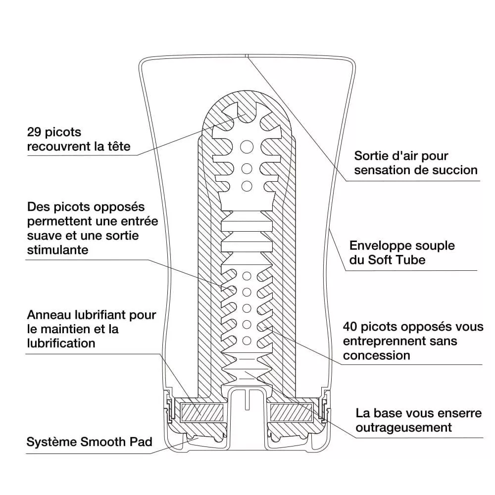 Vízbázisú síkosítóval már ellátott, kiváló tapadást biztosító, puha tokkal rendelkező maszturbátor, légnyílása segítségével használat közben a nyomás egyszerűen szabályozható. A terméket egyszeri használatra javasolják, mivel nem tisztítható. Többszöri felhasználás csak óvszerrel ajánlott !